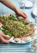 You can add red chillis to the coriander and breadcrumbs if you like a little extra heat. Serve with a nice green salad – rocket, spinach and watercress would be good – and small new potatoes.